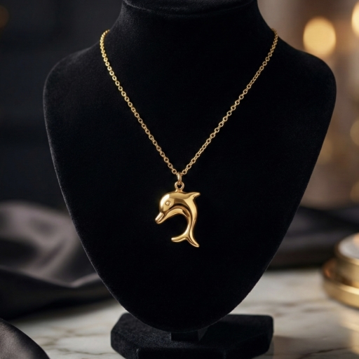 Capture the playful spirit of the ocean with this charming 18K gold-plated dolphin necklace from Momai Jewels. Featuring a beautifully sculpted, high-shine dolphin pendant suspended on a delicate cable chain, this piece brings a touch of coastal elegance to your everyday style.