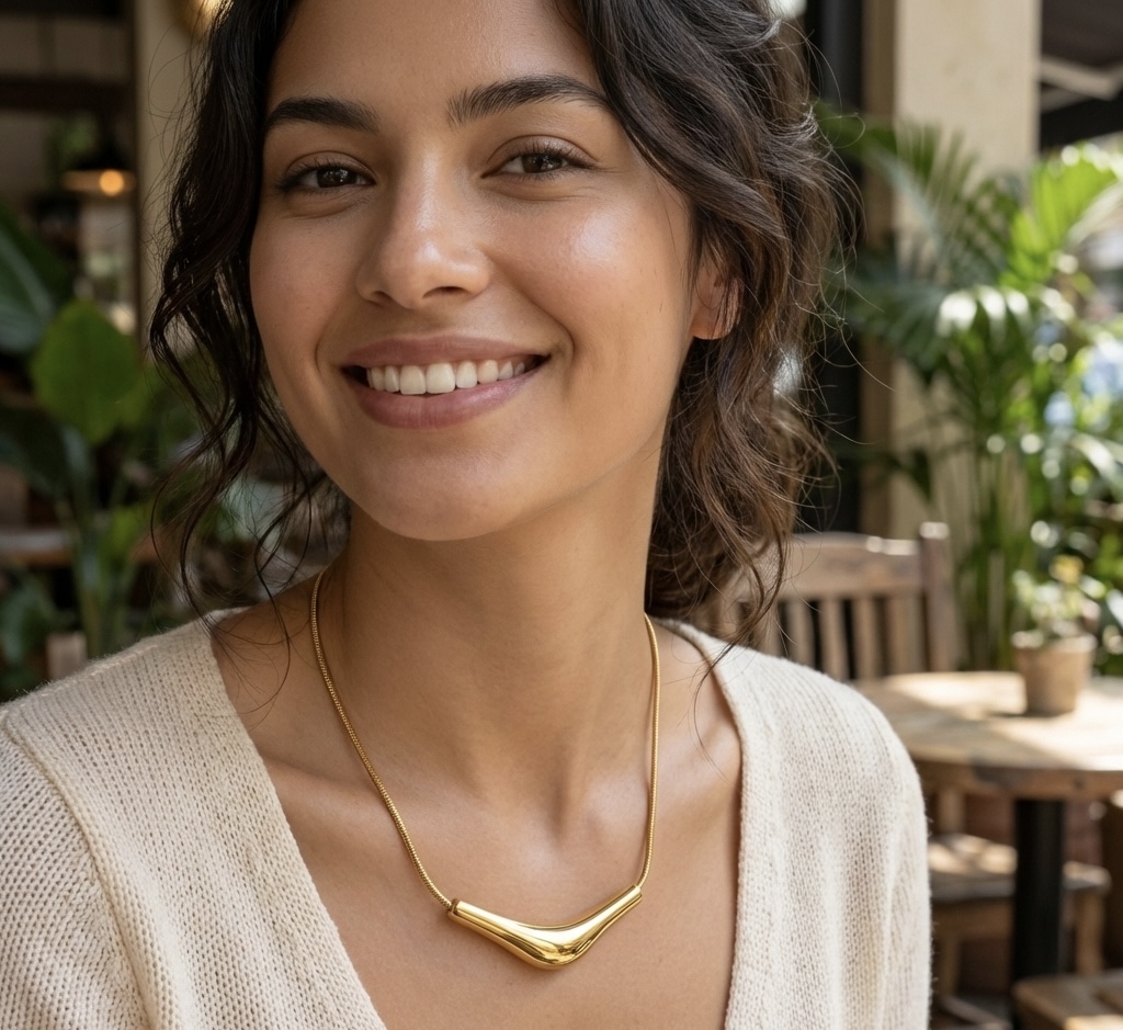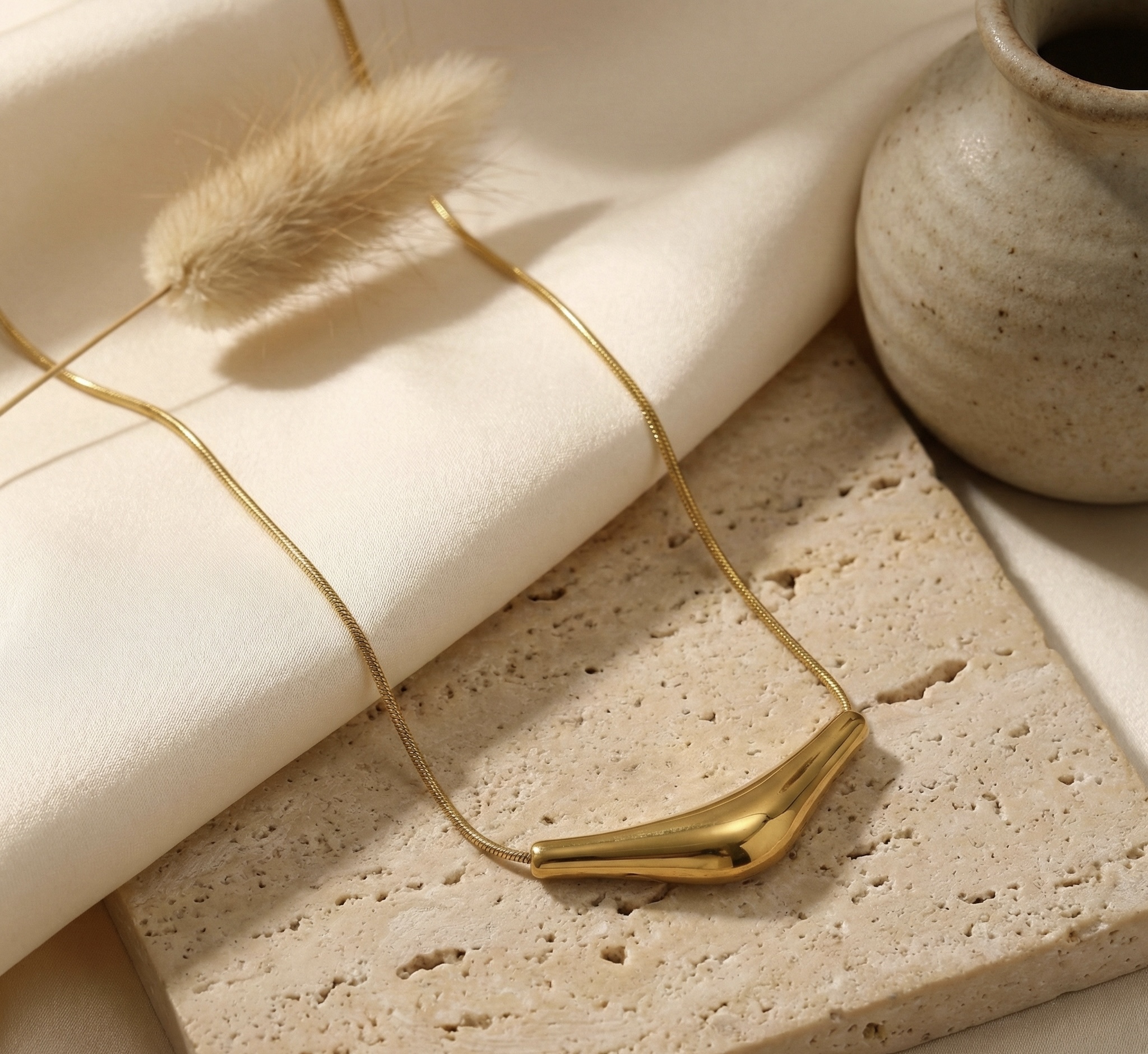 Curved Bar Chain Pendant – 18K Gold Plated Demi-Fine Jewelry – Momai Jewels