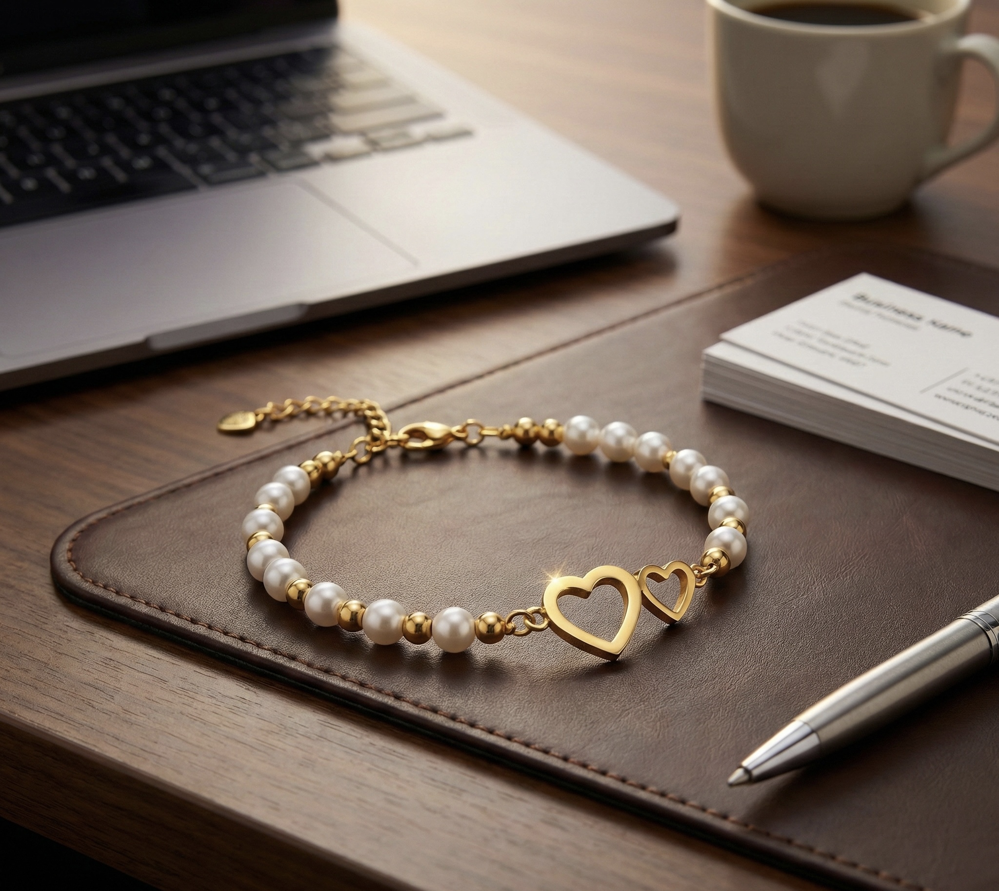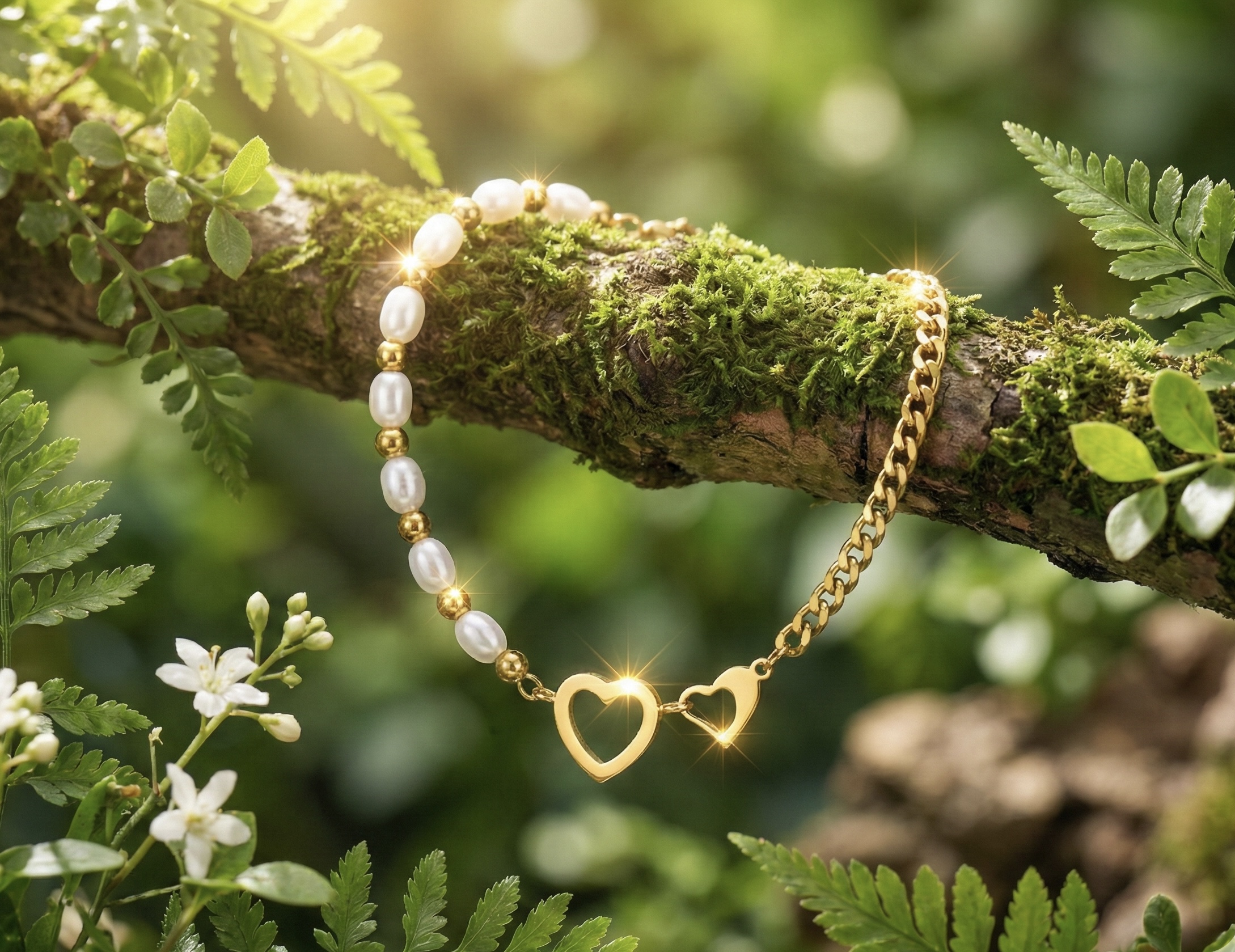 | Design | Open heart charms with mixed chain and bead accents |