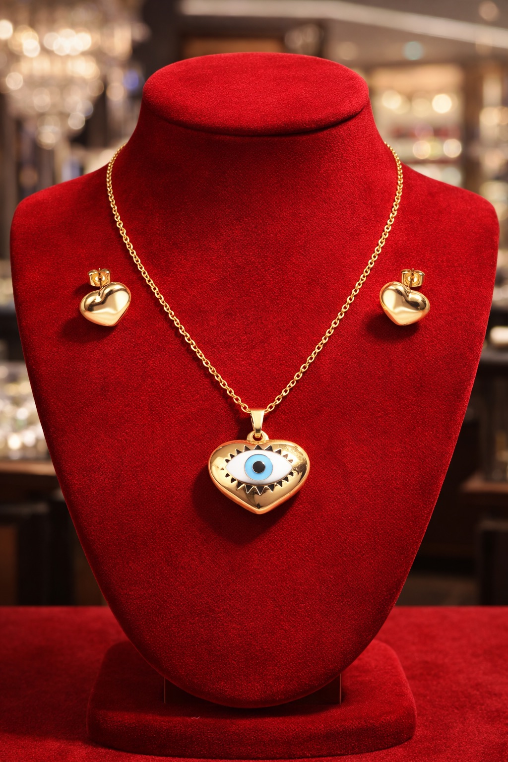 Evil Eye Heart Necklace & Stud Earring Set – 18K Gold Plated Demi-Fine Jewelry – Momai Jewels