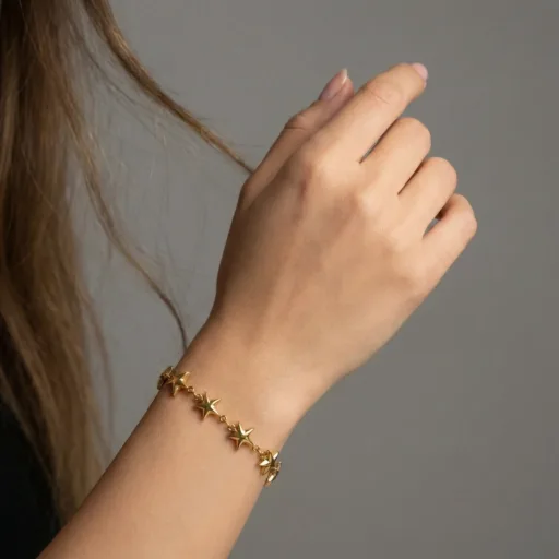 The bracelet showcases evenly spaced star-shaped charms with a smooth, high-polish finish. Its delicate construction ensures comfort while maintaining durability, making it an ideal choice for effortless everyday styling or layering with other bracelets.