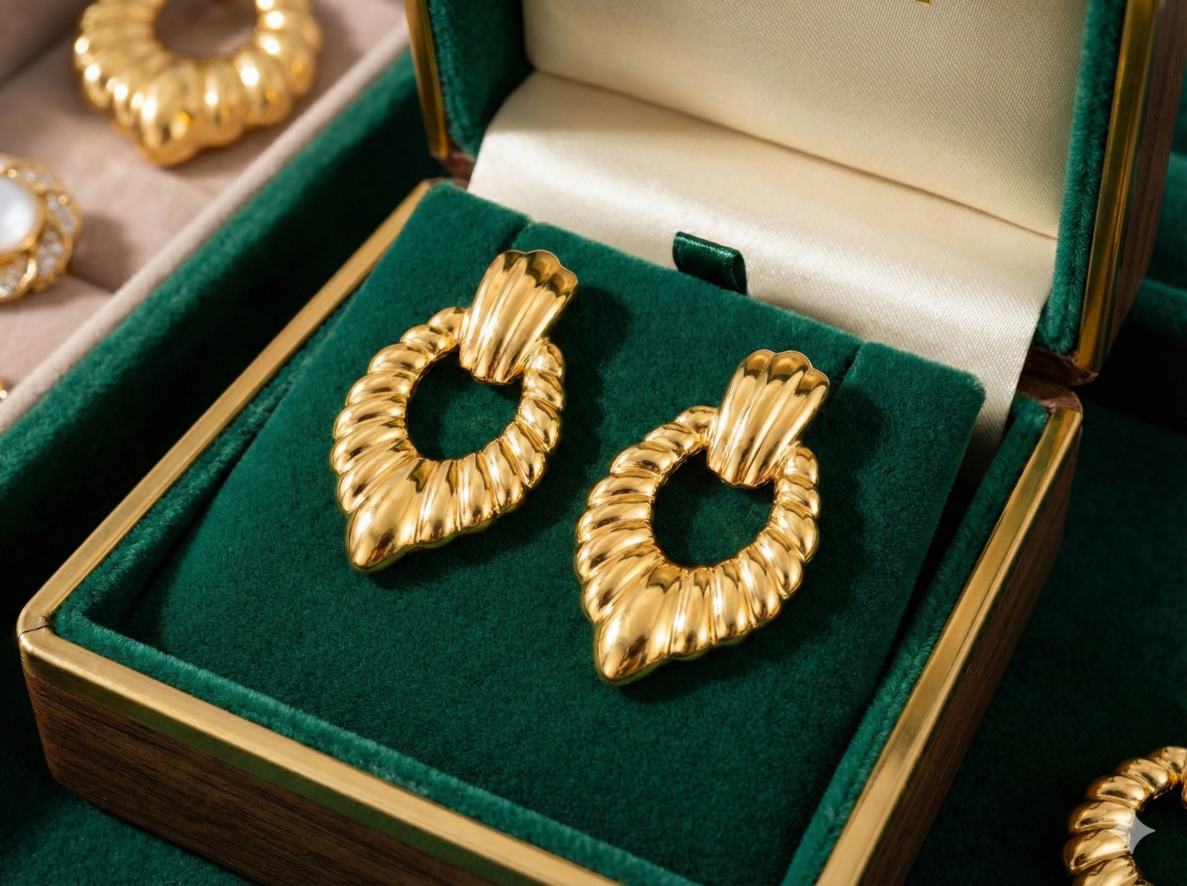 Store your earrings in a soft pouch when not in use. Avoid direct contact with water, perfumes, and harsh chemicals to maintain their shine and plating. Gently clean with a soft cloth for long-lasting brilliance.
